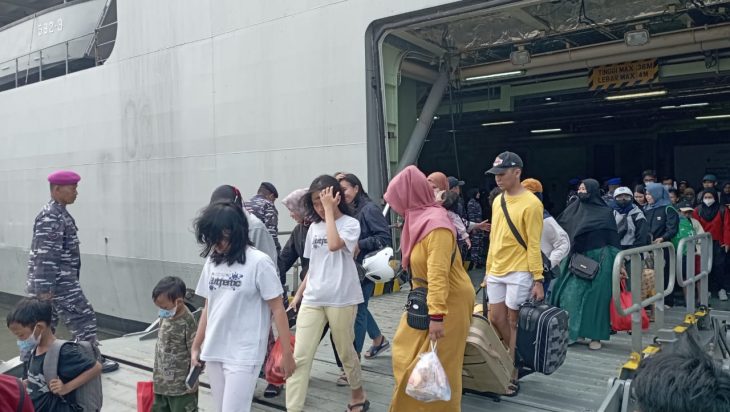 Sejumlah 199 pemudik dan 55-unit kendaraan roda turun di Surabaya dengan selamat. Bagi pemudik tanpa kendaraan bermotor Lantamal V dan Satlinlamil 2 memfasilitasi bus untuk pengantaran keluar dari Basis TNI AL sampai dengan Jalan Jakarta, Surabaya guna memudahkan mereka mendapatkan transportasi lanjutan untuk sampai tempat tujuan masing-masing. Dalam kesempatan tersebut Komandan Lantamal V mengucapkan selamat datang kepada para pemudik dan menyampaikan ungkapan rasa syukurnya seluruh kegiatan dukungan angkutan laut gratis bagi penudik dapat terselenggara dengan aman dan lancar.