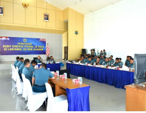 Pontianak, PUBLIKASI — Inpektur Umum (Irum) Inspektorat Jenderal TNI Angkatan Laut (Itjenal) Laksamana Pertama TNI Didik Firnanto, S.E., M.M, M.Han., M.Tr.Opsla. selaku Pengendali Teknis (Dalnis) tutup Audit Kinerja Itjenal TA 2024 di Lantamal XII dan Jajaran bertempat di Gedung Malahayati Satuan Kapal Patroli (Satrol) Lantamal XII Jl. Komodor Yos Sudarso No. 1 Pontianak Kalimantan Barat, Kamis (25/07/2024).