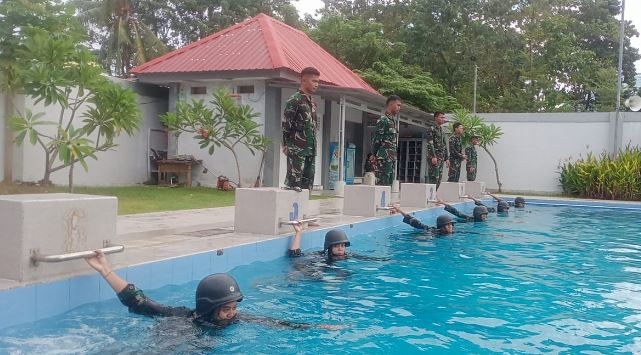 Pada kegiatan tersebut, Komandan Satlinlamil 3 terjun langsung mengikuti Latihan Renang Laut bersama prajurit untuk memberikan motivasi dan semangat dalam berlatih. (Andi RR)