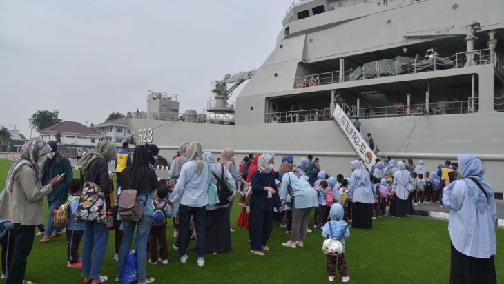 Jakarta, PUBLIKASI – KRI Teluk Palu-523 yang baru saja kembali ke pangkalan Jakarta setelah terlibat dalam kegiatan Sail Tidore 2022 dan saat ini tengah sandar di Dermaga Mako Kolinlamil, Tanjung Priok, Jakarta Utara langsung disiapkan untuk menerima kedatangan rombongan pelajar dari SD Merdeka Belajar Jakarta Utara dan TK Madina Islamic School Grand Galaxy City Bekasi Selatan yang akan melaksanakan wisata edukasi KRI ‘warship tour’, Rabu (7/12). Kegiatan wisata edukasi dengan mengunjungi KRI jajaran Kolinlamil yang menjadi salah satu program kerja Staf Potensi Maritim Kolinlamil mendapatkan animo dan antusiasme masyarakat yang ingin melihat dan mendapatkan informasi secara langsung kapal perang yang menjadi kebanggaan rakyat Indonesia.