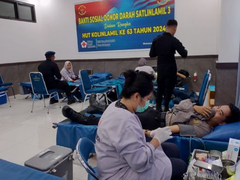 Makassar, PUBLIKASI — Dalam rangka menyambut HUT Komando Lintas Laut Militer (Kolinlamil) Ke-63 Tahun 2024, Satuan Lintas Laut Militer (Satlinlamil) 3 bekerjasama dengan Unit Transfusi Darah PMI Kota Makassar menggelar kegiatan Bakti Sosial Donor Darah, bertempat di Aula Mako Satlinlamil 3, Jalan Teuku Umar, Makassar, Jumat (28/6) kemarin.